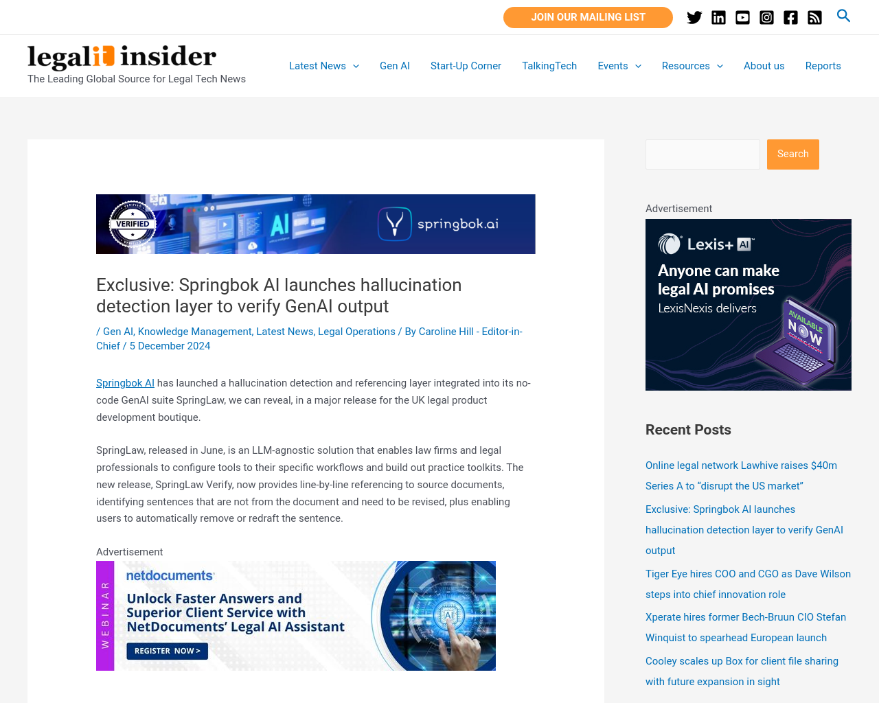 Springbok AIは、そのノーコードGenAIスイートSpringLawに組み込まれた幻覚検出および参照レイヤーを立ち上げました。